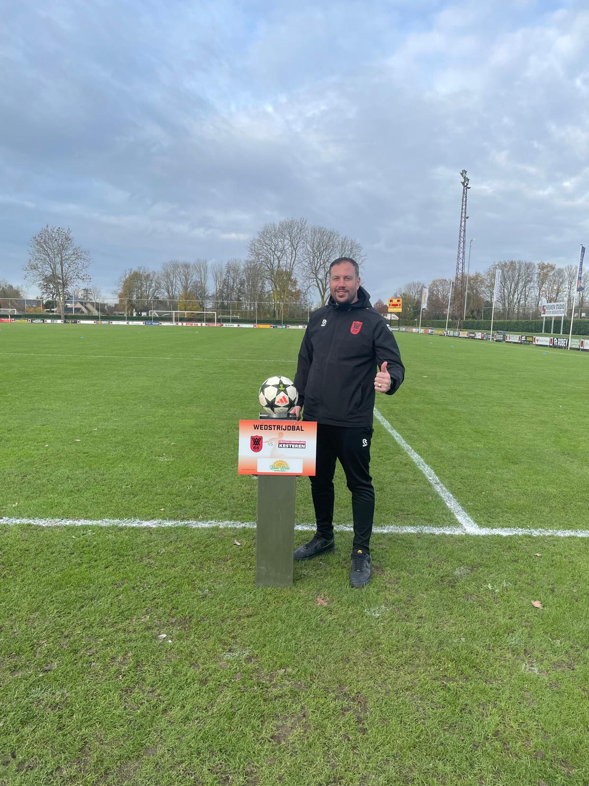 De wedstrijdbal werd geschonken door Marc van Ansem (op de foto broer Patrick).
